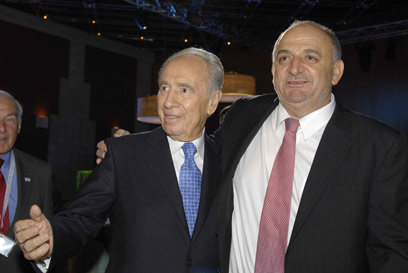 יצחק תשובה ושמעון פרס בוועידת הנשיא היום (צילום: לואיז גרין)