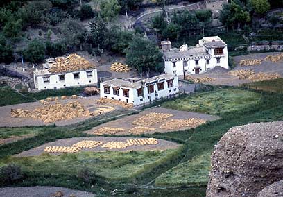 המנזר הבנוי לבני חומר נראה כארמון ענק שצץ מארץ האגדות. שכרנו שם סוס וסייס ויצאנו לדרך. השביל מתפתל לו בין כפרים ציוריים, שדות שעורה שזרעיה תפחו ועמדו בפני קציר, מנזרים בוהקים בלובנם ונהר בצבע אפור כסוף שפילס לו דרך למרגלות הרים ענקיים.