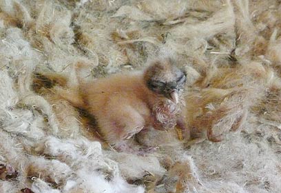 הגוזל הראשון בקע בשתיים לפנות בוקר ביום חמישי שעבר במדגרה. מילר שעקב אחר התהליך באמצעות מצלמות הבקרה מרחוק, הגיע לטפל בגוזל ולפנות בוקר הוא הועבר לחדר השגחה, שם זכה לארוחה ראשונה ומזינה - איברים פנימיים של חולדה.