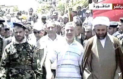 אנשי חיזבאללה חוגגים את השחרור (צילום: אל ג'זירה)