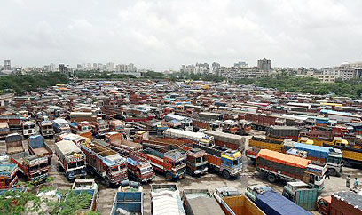 שביתת משאיות בהודו. הסיבה - מחירי הדלק הגואים (צילום: AFP)