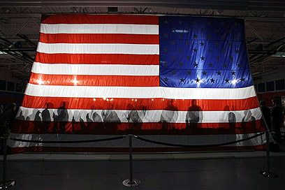 דגל ארה"ב על רקע תומכיו האדישים של מקיין, היום (צילום: AP)
