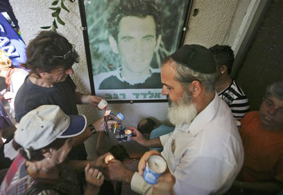 מדליקים נרות נשמה ליד ביתו של אלדד רגב (צילום: ג'ורג' גינסברג)