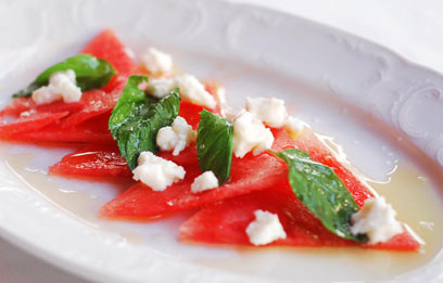 שילוב מתוחכם. קרפצ'ו אבטיח עם גבינה בולגרית (צילום: דנה קופל)