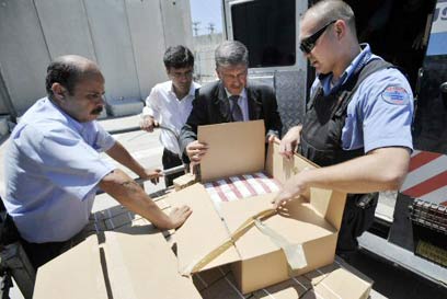 נציגים פלסטיניים בודקים את השטרות (צילום: רויטרס)