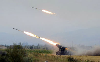 צבא גאורגיה יורה טילים לעבר אוסטיה (צילום: רויטרס)