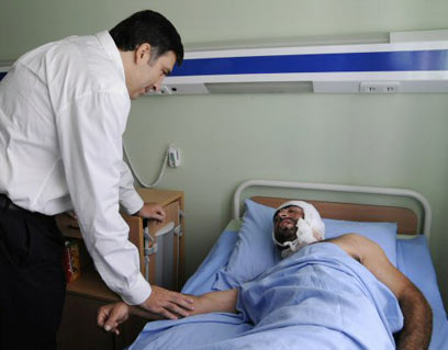 נשיא גאורגיה בביקור פצועים (צילום: רויטרס)