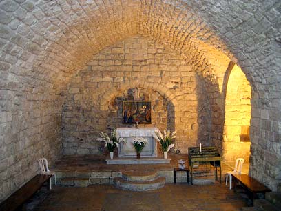 כמעט כמו בכל כנסייה חשובה בישראל, גם כאן נמצאים במפלס התחתון, מתחת למבנה החדש והמודרני משנות השישים של המאה שעברה, שרידי כנסייה צלבנית מהמאה ה-12 וביזנטית משנת 427 לספירה.