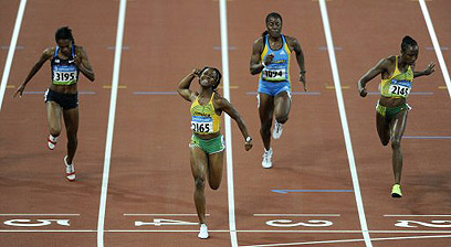 דאבל ג'מייקני בגמר ה-100 מטר. יממה לאחר מדליית הזהב ושיא העולם המדהים של אוסיין בולט, המשיכה גם שלי-אן פרייזר במומנטום וזכתה בתואר האולימפי בריצה המקבילה לנשים. פרייזר הפתיעה כשסיימה ראשונה ועצרה את השעונים על זמן של 10.78 ש'.