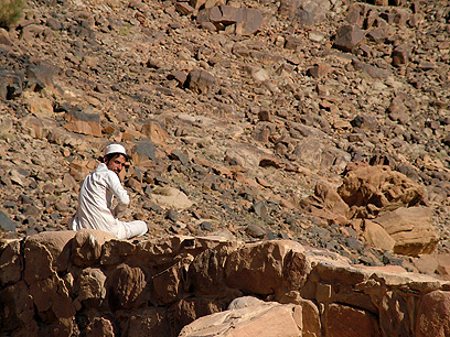 בדואי בחורבות המקדש הנבטי בוואדי ראם (צילום: איוי לרר)