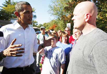 אובאמה וג'ו השרברב (צילום: רויטרס)