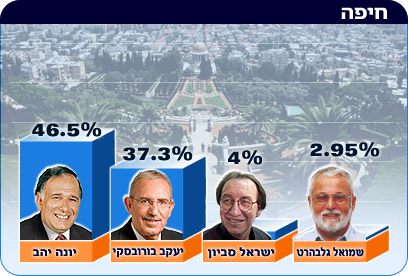 מספירת הקולות בחיפה, עולה כי ראש העיר יהב זכה בבחירות עם 46.5 אחוזים מהקולות. יריבו יעקב בורובסקי זכה ב-37.3% מהקולות
