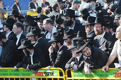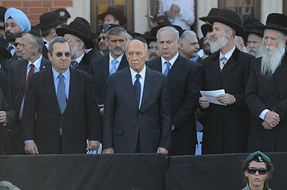 הרב גרוסמן, הרב מצגר, נתניהו, פרס, ישי וברק בטקס (צילום: ירון ברנר)