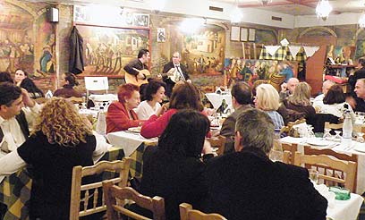 זה בהחלט לא היה מה שדמיינתי כשהחלטתי לצאת לסיור טברנות באתונה. עמדתי ביציע של הופעה במועדון לילה מפואר. 1,500 איש ישבו מסביבי, לבושים כמו לאופרה, כולל מעילי פרווה והרבה נצנצים. על הבמה עמדו שני זמרים מבוגרים, גבר ואישה, ושרו זה לזה בשיא הקיטש והפאתוס. נערות במדים שחורים עברו בקהל ומכרו סלסלות של פרחים לבנים בעשרה אירו כל אחת. הפרחים, כדאי לדעת, הם המחליפים המודרניים של מנהג שבירת הצלחות, שעבר מן העולם בעידוד השלטונות היווניים, שלא אהבו את המסורת הוונדליסטית.