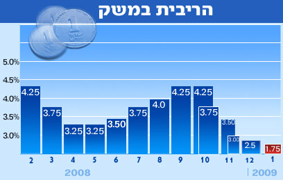 נלחמים בהאטה בצמיחה: נגיד בנק ישראל סטנלי פישר הוריד אמש (ב') את הריבית במשק ב-0.75% ל-1.75% - רמתה הנמוכה ביותר מאז ומעולם.