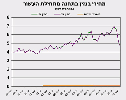 ב-1 בדצמבר ירד מחיר הדלק בשיעור של כ-9%, ל-5 שקלים בלבד לליטר בנזין 95 אוקטן (בשירות עצמי) ול-5.01 שקלים לליטר בנזין 96 (בשירות עצמי).