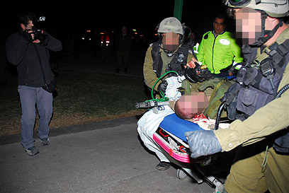 פינוי פצועים לסורוקה, הלילה (צילום: הרצל יוסף)