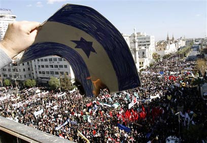 הפגנת המחאה הגדולה בדמשק, היום (צילום: AP)