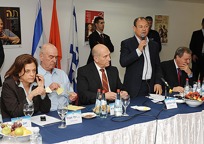 אולמרט עם השרים וראשי הרשויות, היום (צילום: משה מילנר, לע"ם)