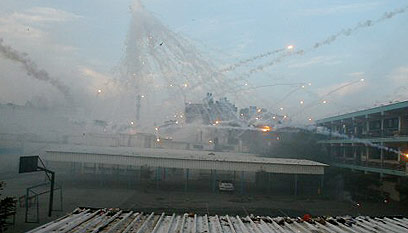 פצצות בבית הספר של אונר"א, הבוקר (צילום: AFP)