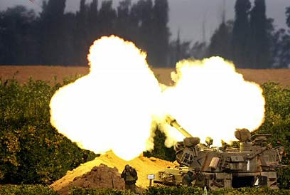 תותח יורה פגז לעבר רצועת עזה, הבוקר (צילום: רויטרס)