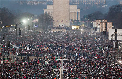 מיליוני בני אדם התאספו אחר הצהריים (ג') ברחבת המול בוושינגטון הבירה כדי לראות מקרוב את השבעתו ההיסטורית של ברק אובמה לנשיא ה-44 של ארצות הברית. כאשר אובמה רעייתו מישל, וסגנו ג'ו ביידן עלו על הבמה, הם התקבלו בתשואות ההמונים שנופפו באלפי דגלים וזעקו "אובמה!" בהתלהבות.