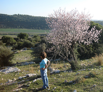 נגיע למקום בו השארנו את הרכב, נחצה את ערוץ נחל האלה, נצטייד בחלוק נחל, ונפסע לצידי מטע השקד שכבר מלבלב.