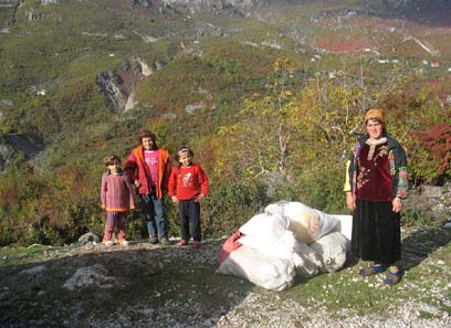 ככל שנתרחק מהחוף אל ההרים, נראה שהחקלאות שראינו קודם הינה חקלאות מתקדמת יחסית. לעומת זאת, בהרים כבר אין טרקטורים, החקלאות ידנית והחלקות קטנות עוד יותר ומעובדות על ידי נשים אלבניות בלבוש מסורתי.