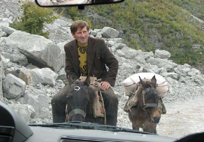 מתת אנו יוצאים לכיוון מערב. שוב הנוף האלפיני המהמם ואנחנו על גג העולם. הדרך בה אנחנו נוסעים נפרצה בזמן מלחמת העולם השנייה על ידי הצבא האיטלקי. מאז לא נגעו בה. בשיחה עם המקומיים המעטים שגרים בכפר אנחנו מבינים שכמעט לא משתמשים בדרך זו. על המפות שלנו, בכל אופן, היא לא מופיעה. אנחנו בוחרים להמשיך בדרך ומגיעים לאזור חקלאי מבודד לחלוטין. אנחנו מזהים גידול של "עשב לעישון" שהוא לא טבק. גם זאת דרך להתפרנס כאן. הקרבה לגבול עם מונטנגרו הופכת את האזור המנותק הזה למקום מצוין להברחות.