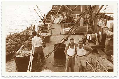 10. יאני שכר אונייה שתוביל את החוטרים לישראל. האונייה נשאה דגל איטלקי ומסמכי הנסיעה שלה היו לאירופה דרך תעלת סואץ. רק כשהיו בים התיכון הודיעו לקברניט האונייה על שינוי יעד הנסיעה - לישראל. הייתה מהומה רבתי אבל לבסוף הגיעה האונייה לחיפה. למרבה הצער, במסע זה התייבשו רבים מחוטרי התמרים. בתצלום: האונייה במהלך המסע.