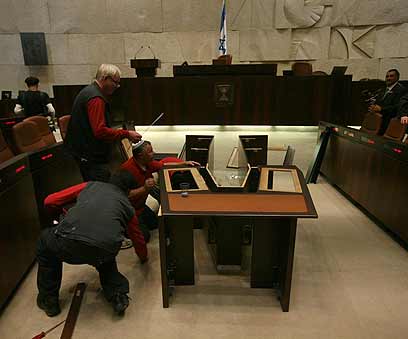 התוספת שתופסת: שולחן הממשלה הנוסף בכנסת, היום (צילום: גיל יוחנן)
