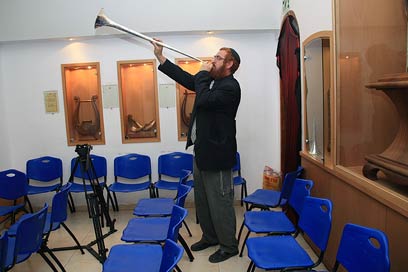 תקיעה בחצוצרה עשויה מקשה אחת של כסף (צילומים: רון פלד)