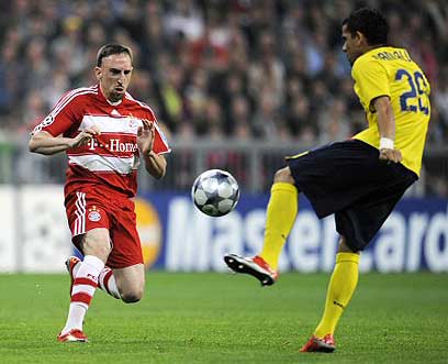 דני אלבס מנסה להפחיד את פרנק ריברי מבאיירן (צילום: AP)