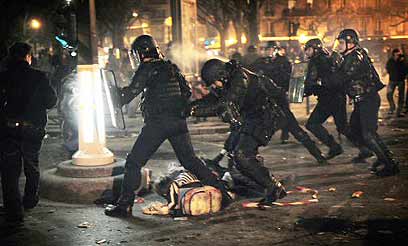 שוטרים ומפגינים מתעמתים בפריז במרס. הגלובליזציה - אויב (צילום: AFP)