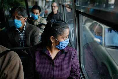 לא לוקחים סיכון. אזרחים מכסיקנים בתחבורה הציבורית (צילום: AFP)