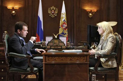 מגבשים אסטרטגיה. גוליקובה ומדבדב (צילום: רויטרס)