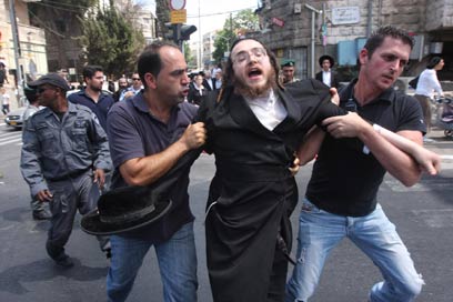 מעצר האם המרעיבה: שוטר נפצע במהומות חרדים