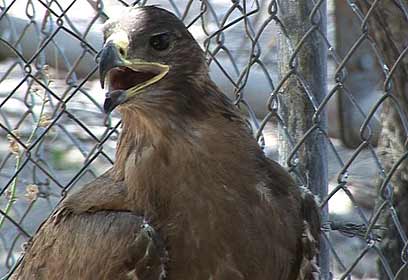 עיט ערבות בכלוב התעופה בבית החולים (צילום: רועי גזית)