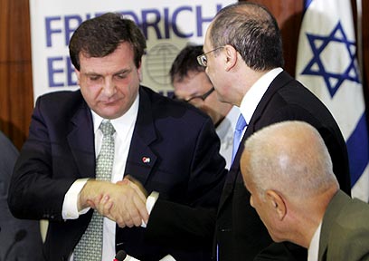 חצי פגישה. סילבן שלום עם השר הפלסטיני הערב (צילום: ניר קידר)