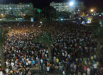 האלפים שבאו לעצרת, הערב (צילום: יעל גולן)
