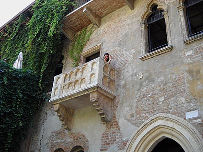 מדובר בסיפור שהיה קשור לסכסוך עתיק שהתרחש ב-1302, וזכה לחיי נצח בכך שנהפך למחזה הקלאסי של שייקספיר. אם משוטטים בתוככי הרחובות העתיקים של ורונה, ליד פיאצה דלה ארבה, מגיעים לחצר בית משפחתה של יוליה, שם נמצאת מרפסת האוהבים הידועה. כשביקרנו במקום, קהל התיירים מרחבי העולם התגודד בתוך החצר הפנימית, ועל אותה מרפסת ניצבה עלמה צעירה ונופפה בידידות לכל עבר.