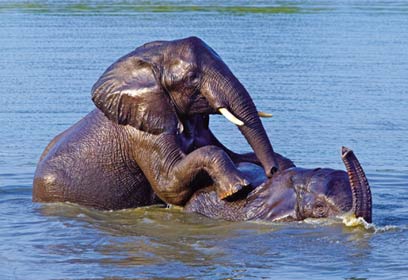 מכשיר הקשר של ווין התעורר לחיים, והודיע לו ששני פילים צעירים נכנסו לאחד ממקווי המים היותר גדולים, לצנן את גופם ולשחק. השניים נראו כמו שתי בלרינות, מטפסים זה על זה, דוחפים, מטביעים.