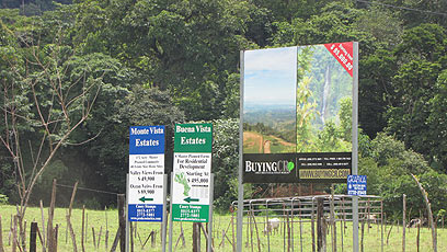 בדרך לתמרינדו, תיקוני כביש וגשר שלחו אותי - לראשונה במרכז אמריקה - לאיגוף של כשלושה קילומטר לחצות נהר רדוד, במים בעומק של כחצי מטר. נסעתי בעקבות נתיב שהוכן וסומן. וקינחתי בעלייה בדרך חצצית, מתונה ורטובה בחזרה לציר המרכזי. הנוף נשאר מישורי. רחוק בצפון-מזרח נראו רכסי הרים. האוויר היה לח מאוד. מאז נכנסתי לאזור הטרופי מעיל הרכיבה, הקסדה והמגפיים ספוגי זיעה. ועל אף התנאים, אין מצב לוותר על ההגנה שהם מספקים לי. כאן בקוסטה ריקה, הלחות היא כמו וילון מלמלה שאני עובר דרכו כל הזמן, מה שחייב עצירות תכופות לניקוי משקף הקסדה. הנסיעה בסופי שבוע בכבישים צדדיים המובילים לאתרי תיירות דומה למה שקורה בכל ארץ מתוקנת: כולם ביחד על הכביש. עוד לפני שהגעתי לחוף תמרינדו, היה טפטוף של תופעת "הכל למכירה" וככל שהתקרבתי לאזור החוף ראיתי יותר שלטים של חברות השקעה עם ניסוחים מסדרות טלוויזיה, המציעים למכירה מבנים, חוות, חופים, איים, יערות, נחלים או סתם את כל קוסטה ריקה.