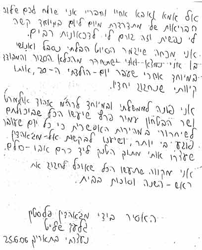 שליט חותם: "האסיר בידי מג'אהדין פלסטין, גלעד שליט, נעצרתי בתאריך 25.6.06".