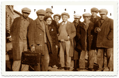 8. שלושת האחים לבית (שטוק) סדן במרחביה: 1) שילק; 2) פרופ' דב סדן, שלא היה חבר מרחביה; 4) אסתר, אשת שילק עם בנה אסא (3); 5) סוניה לבית סדן, אשת מאיר לבבי.