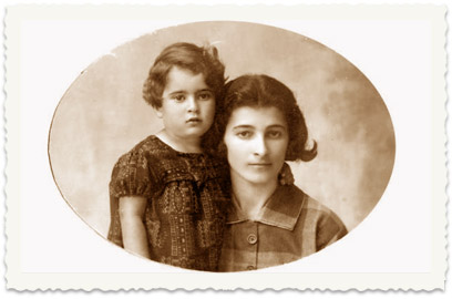 14. לינה (לבית גוטפריד), אשת צבי ורדי, עם בתה שלומית. לינה ילידת העיירה בוצאץ.