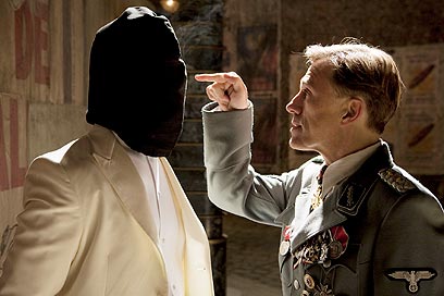 בהיפוך גמור לאלדו נמצאת דמותו של קולונל האס.אס הנס לנדה, המכונה "צייד היהודים" (כריסטוף וולץ, שגונב את ההצגה). הוא לא הרע שאוהבים לשנוא אלא הרע שאי אפשר שלא לחבב. נוכחותו מקדמת את מקור ההנאה והדגש המרכזי בסרט. החל בסצנת הפתיחה המצוינת ולכל אורכו, הדגש בסרט הוא על חילופי