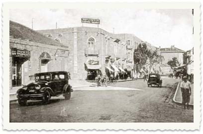 23. ירושלים, רח' יפו, ליד המכונית "בית מרקחת", ועל הבית הפינתי שלט: מלון תל אביב ט. ורשבסקי