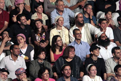 וההמונים האלה השתייכו בעיקר למגזר הדתי, על שלל גווניו ודקויותיו. רוב החילוניים שהתחברו לאלבום החמיצו אמש את רנד מלהטט בכישרונותיו הרבים: מילים, לחנים ובעיקר הגשת שירים, שכללה החצנה מאסיבית של אישיות השחקן שלו. וכך, הוא הניע את גופו ופניו כדי להמחיש את תוכן שיריו, כולל שימוש דרמטי במגבת תכלת להשהיית המתח.