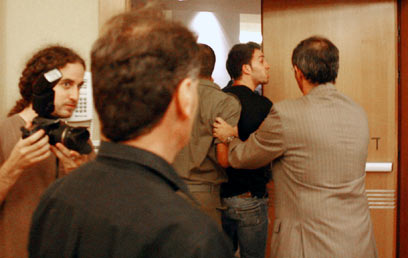 מבוכה גדולה. אוהדי בית"ר מתפרצים למסיבת עיתונאים (צילום: יועד כהן)